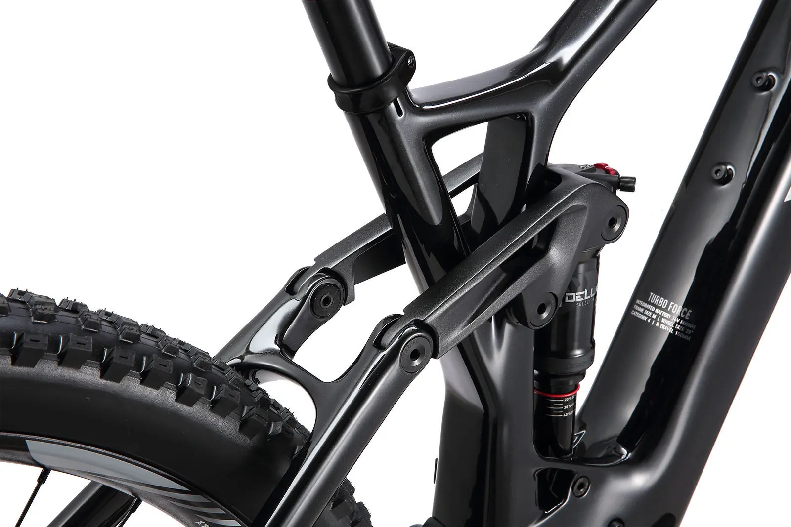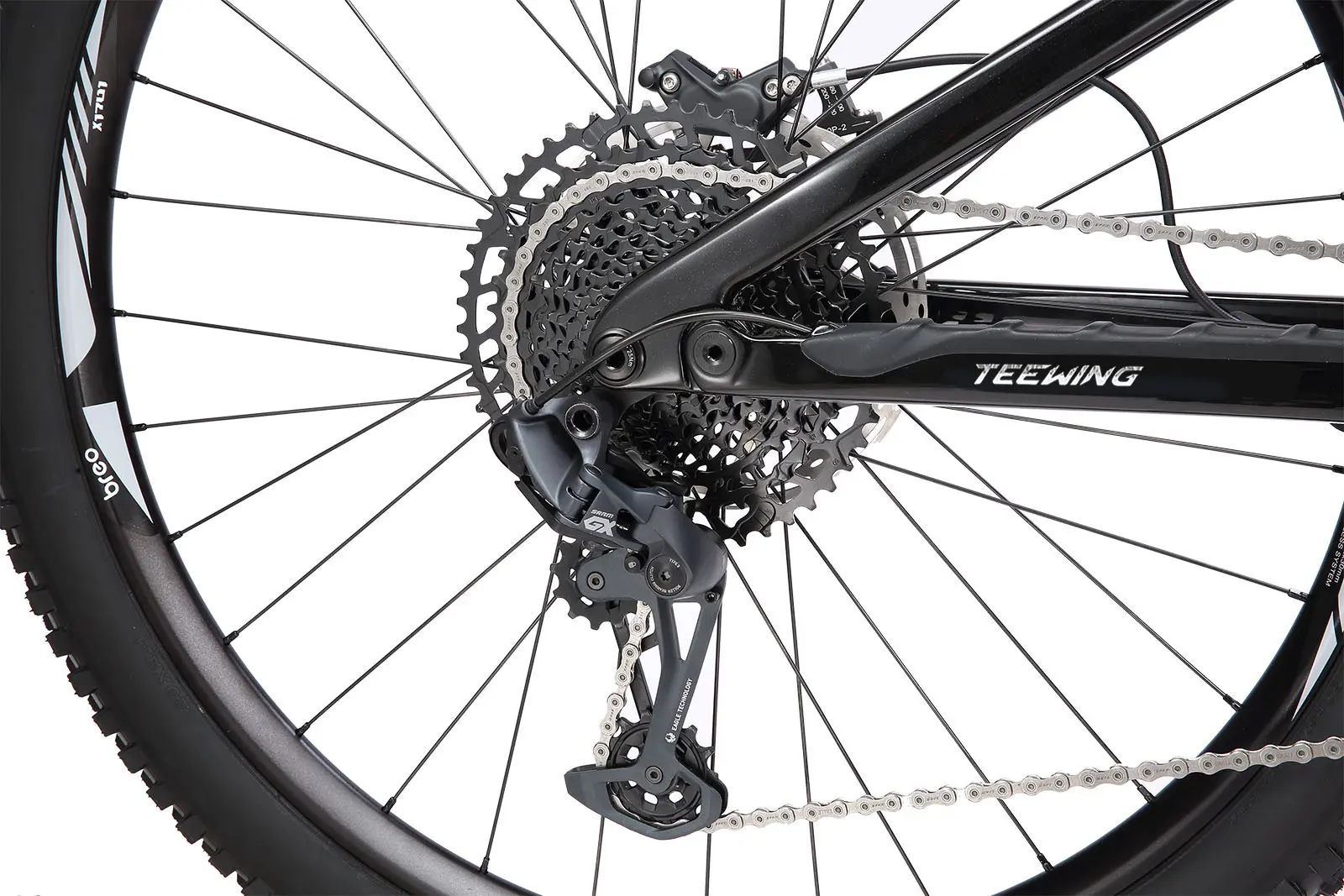 La Teewing Turbo Force XT da un gran paso adelante en el ciclismo de montaña eléctrico con el motor Avinox, que ofrece 105 N·m de par en un diseño compacto y potente. Construida sobre un cuadro de carbono ligero, es rígida y ágil, ofreciendo una conducción reactiva en cualquier sendero. Para mejorar la experiencia, está equipada con un cambio Shimano XT M8100 de 12 velocidades para cambios de marcha precisos y una suspensión suave con una horquilla RockShox FS Lyrik BASE y un amortiguador trasero Deluxe Select+. Con una batería de alta capacidad de 800 Wh, la Turbo Force XT te mantiene con energía y listo para la aventura.